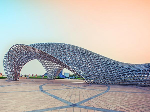 02網架平面形狀靈活,可設計成各種形狀。按腹桿的設置不同可分為:交叉桁架體系、四角錐體系、三角錐體系和其它一些體系。網架的弦桿與邊界相垂直時稱為正放網架,與邊界斜交時稱為斜放網架。世界各國在大、中型屋蓋中都已成功地建造很多網架結構,例如加拿大和日本的博覽會、美國芝加哥國會大廳及英國倫敦的飛機庫等,平面尺寸…